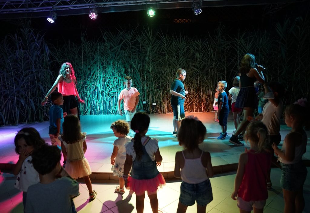 After the shows in the amphitheater, the entertainment continues at the “La Pagoda” bar which turns into a disco-bar and piano-bar, where to the rhythm of sparkling and engaging music adults can dance and have fun even with karaoke, while the little ones continue to be entertained by the animators with activities designed specifically for them, thus ensuring parents the opportunity to fully enjoy the evening.