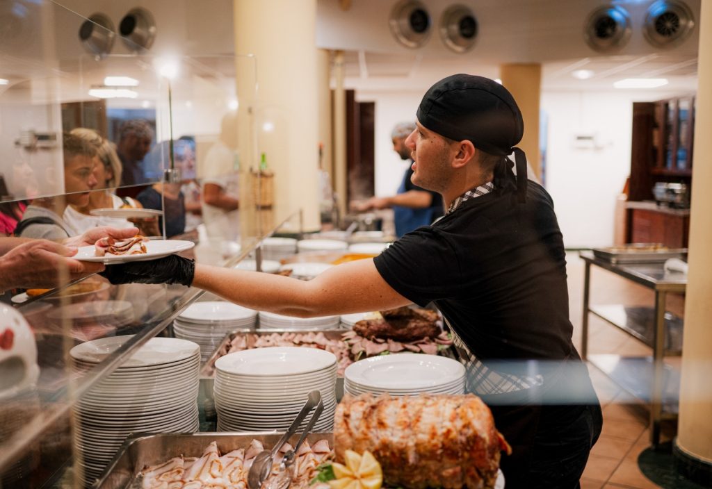 Our buffet service represents a strong point of the gastronomic offer of the Robinson Village, allowing guests to choose from a wide range of culinary proposals ranging from local tradition to national and international dishes, always prepared with care and attention to detail. The screened buffets served by operators guarantee maximum hygiene and safety, while the pre-assigned tables for the entire duration of your stay allow you to enjoy every meal without worries, always having your personal space with a privileged view. Mineralized water on tap is included without limits during meals, a small but significant detail that testifies to our attention to the comfort of guests.